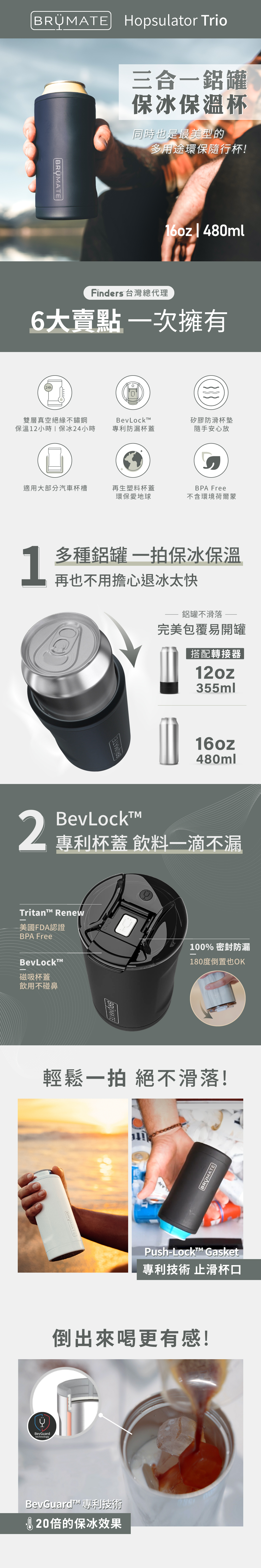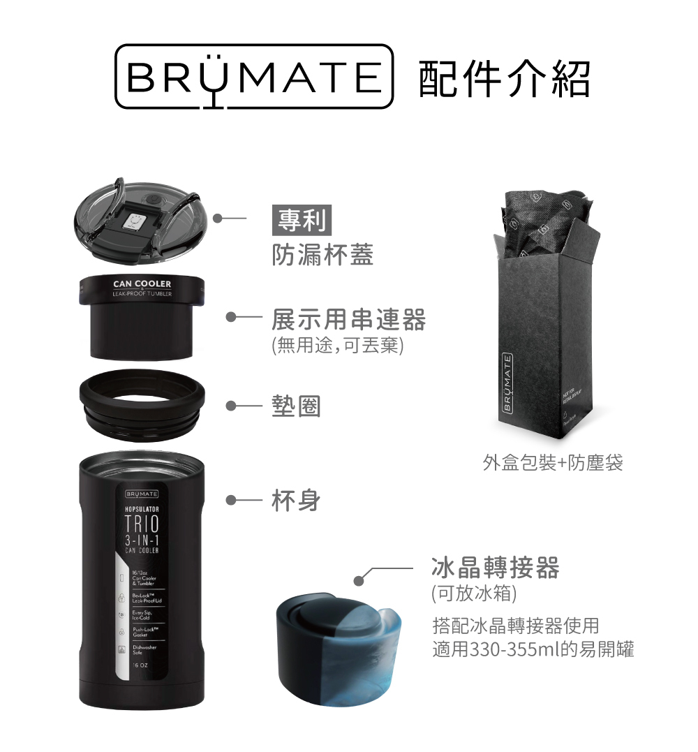 美國 BrüMate Trio 16oz 飲料鋁罐三合一 保溫保冰杯|腮紅粉