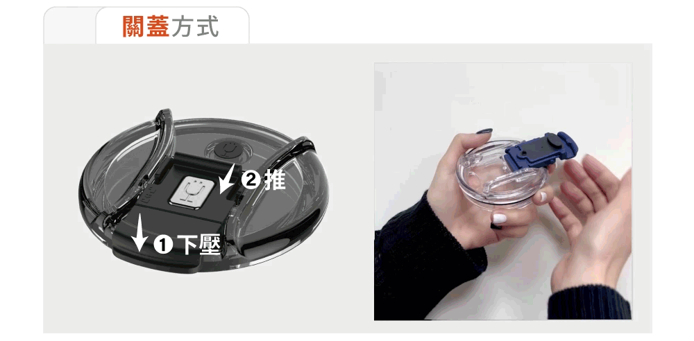 關蓋貼心提醒☛ 使用卡鎖前,請先確認飲口矽膠是否完全密合