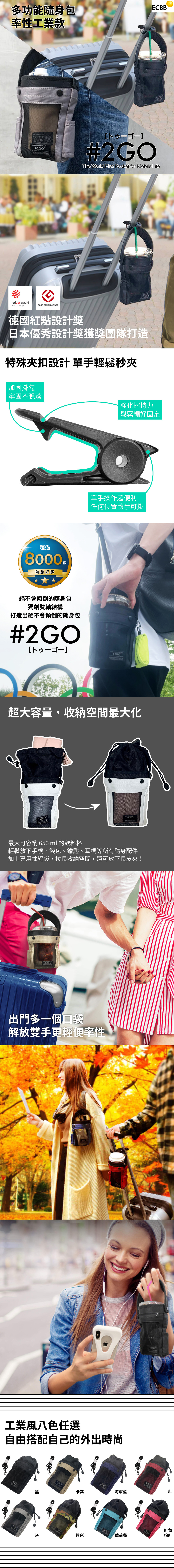 .絕不傾倒的隨身包: 專利夾扣設計,不論怎麼變換吊掛角度,開口永遠向上,放手搖飲與罐裝飲料也不怕傾倒