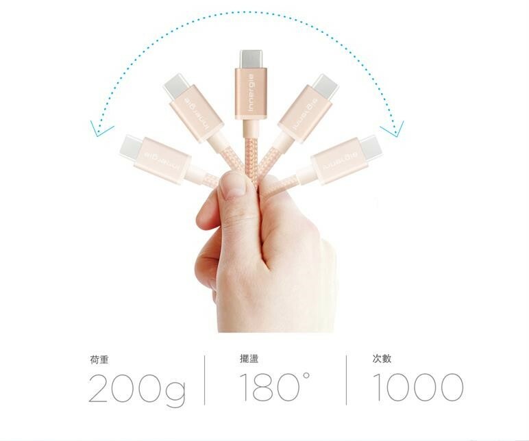 Innergie MagiCable 系列均以高於業界標準的測試條件, 確保您的線材堅固耐折,我們堅持嚴苛地檢視自己的產品,給予使用者比原廠線還厲害的線材 (測試內容:荷重200g , 擺盪180度, 共1000次)
