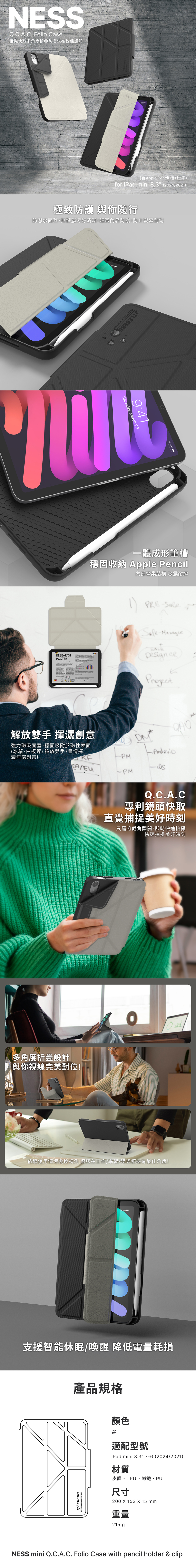 包裝內容物:JTLEGEND  iPad mini 8.3'' 2024/2021 Ness  相機快取多角度折疊防潑水布紋保護殼(含Apple pencil磁扣*1)