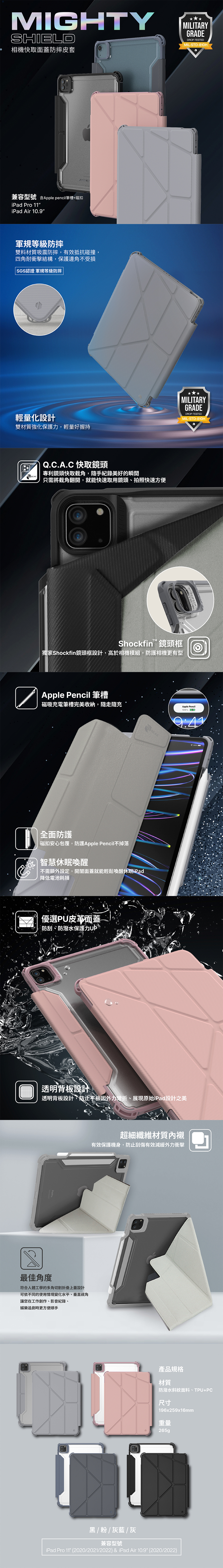 適用機型:2022,2021, 2020 iPad Pro 11"/2025,2024,2022, 2020 iPad Air 6th11'' /5/4th 10.9''