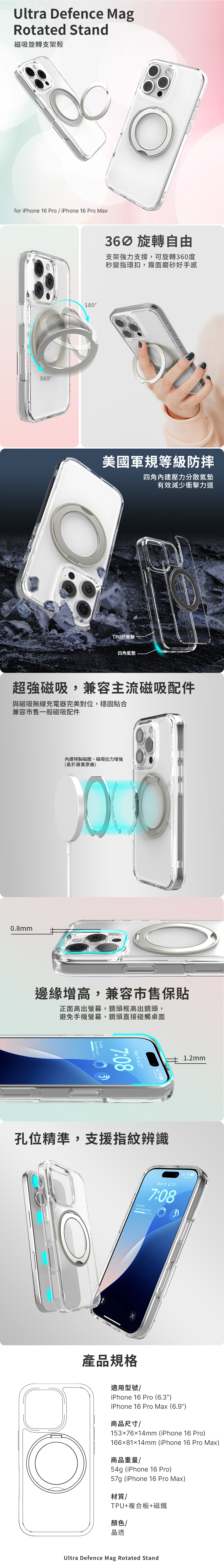 JTLEGEND iPhone 16 Pro (6.3")Ultra Defence Mag rotated Stand磁吸旋轉支架殼-透明