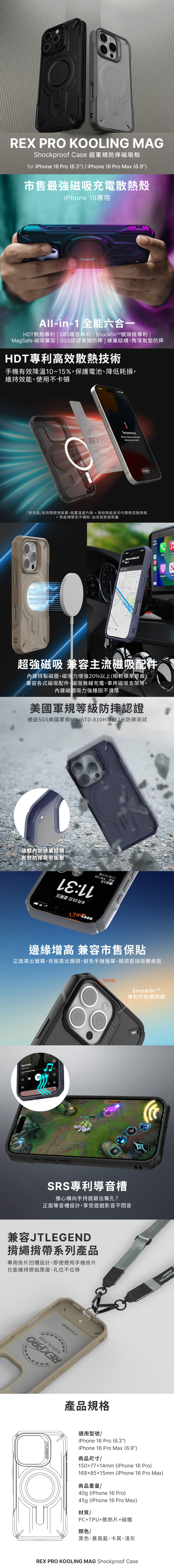 包裝內容物:JTLEGEND iPhone 16 Pro Max (6.9") REX Pro Kooling Mag超軍規防摔磁吸殼 殼x1