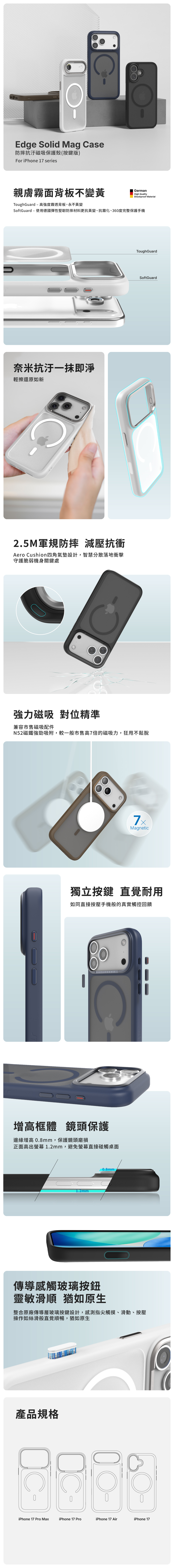 JTLEGEND iPhone 17 Edge Solid 防摔抗汙磁吸保護殼(按鍵版)