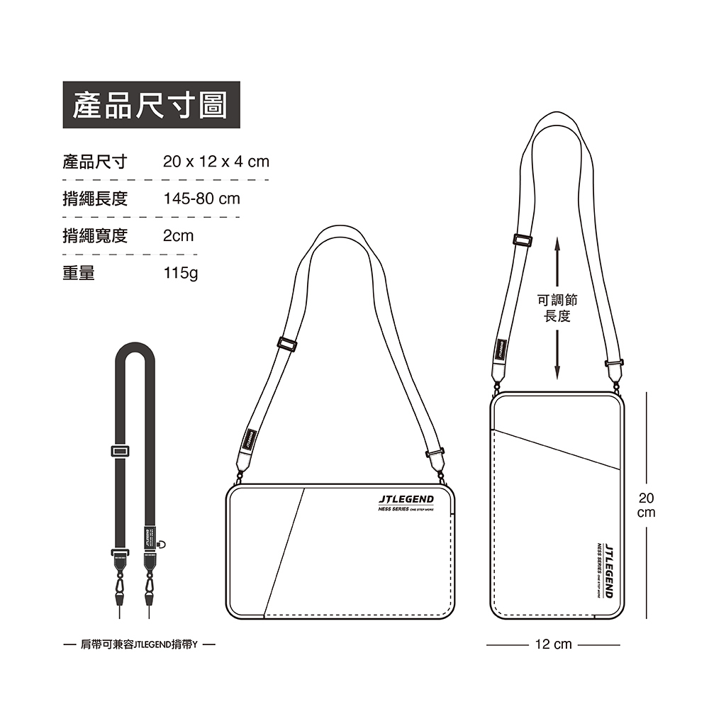 產品尺寸:20x12x4cm 揹帶尺寸80-145cm x寬度 2cm