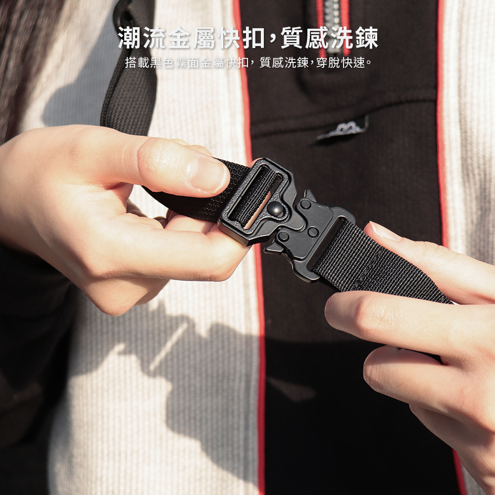 1.黑色霧面金屬快扣,質感洗鍊,穿脫快速。