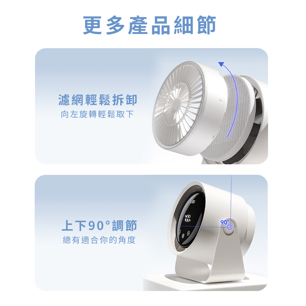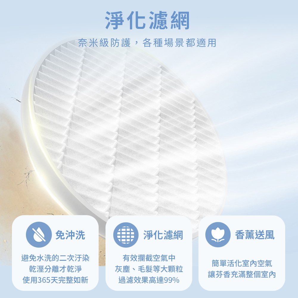 •淨化濾網設計,有效過濾空氣中灰塵、毛髮等大顆粒,送風更健康