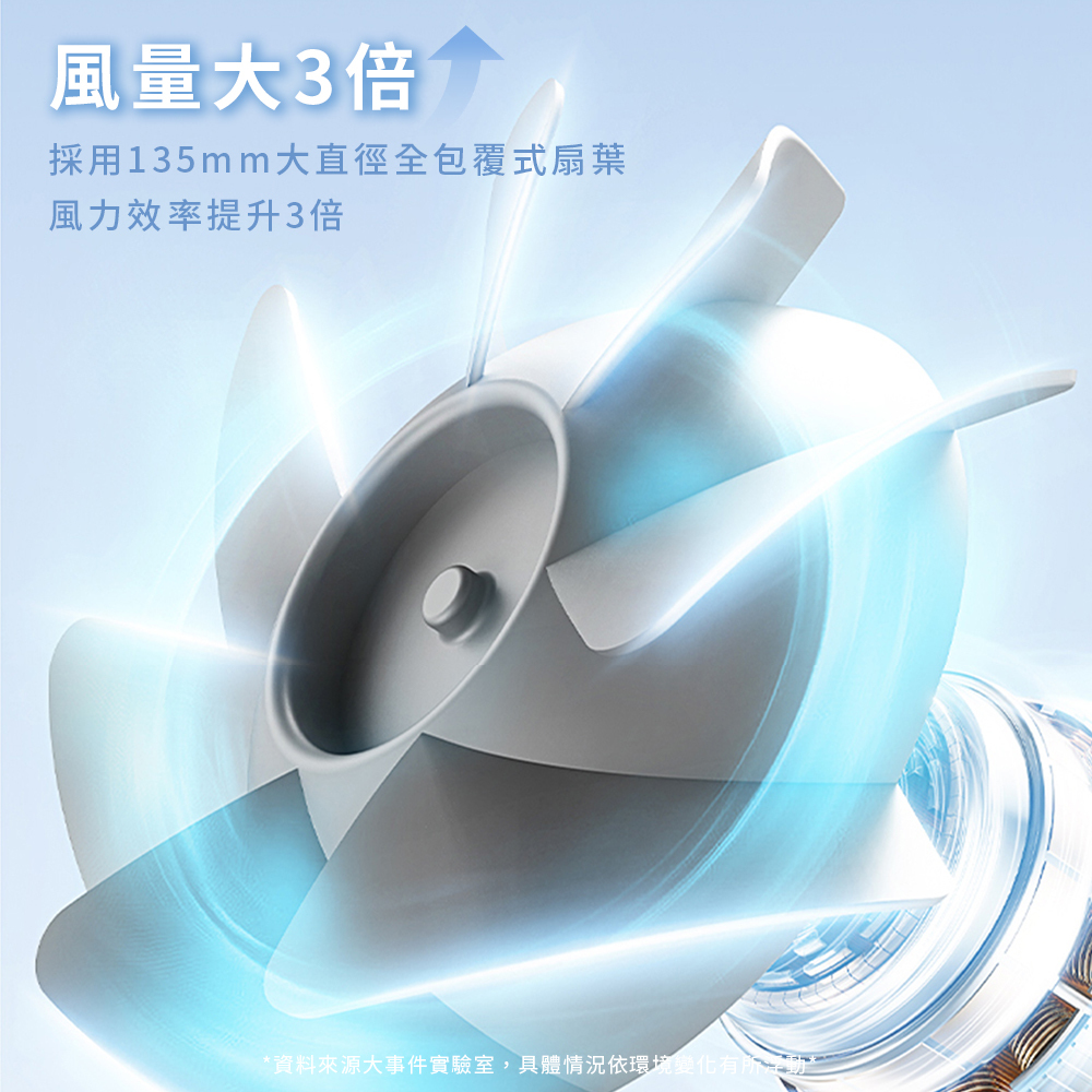 •採用大直徑全包覆扇葉,風力效率提升3倍