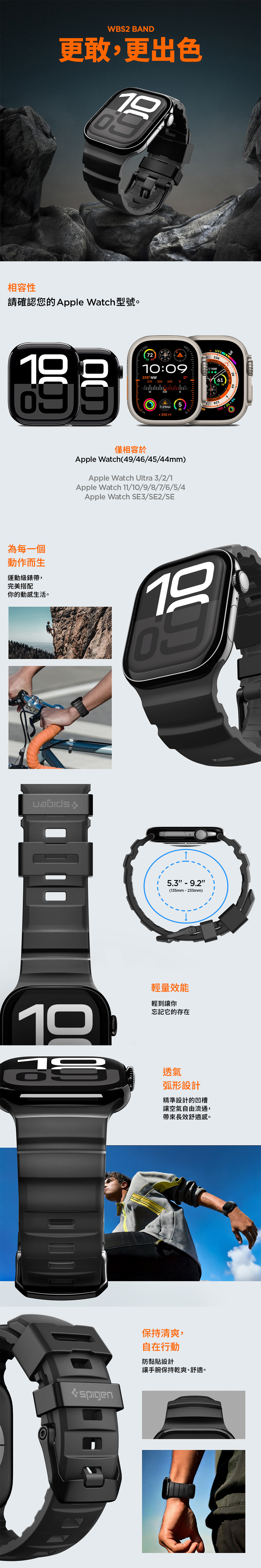 ∙ 適用手腕尺寸:5.3"–9.2"(135mm–235mm)