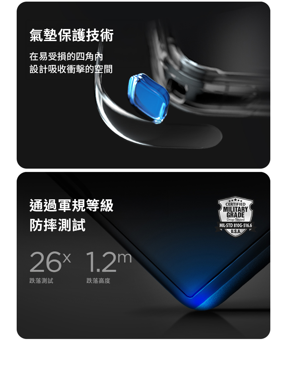 • 四角獨家內縮防撞技術
