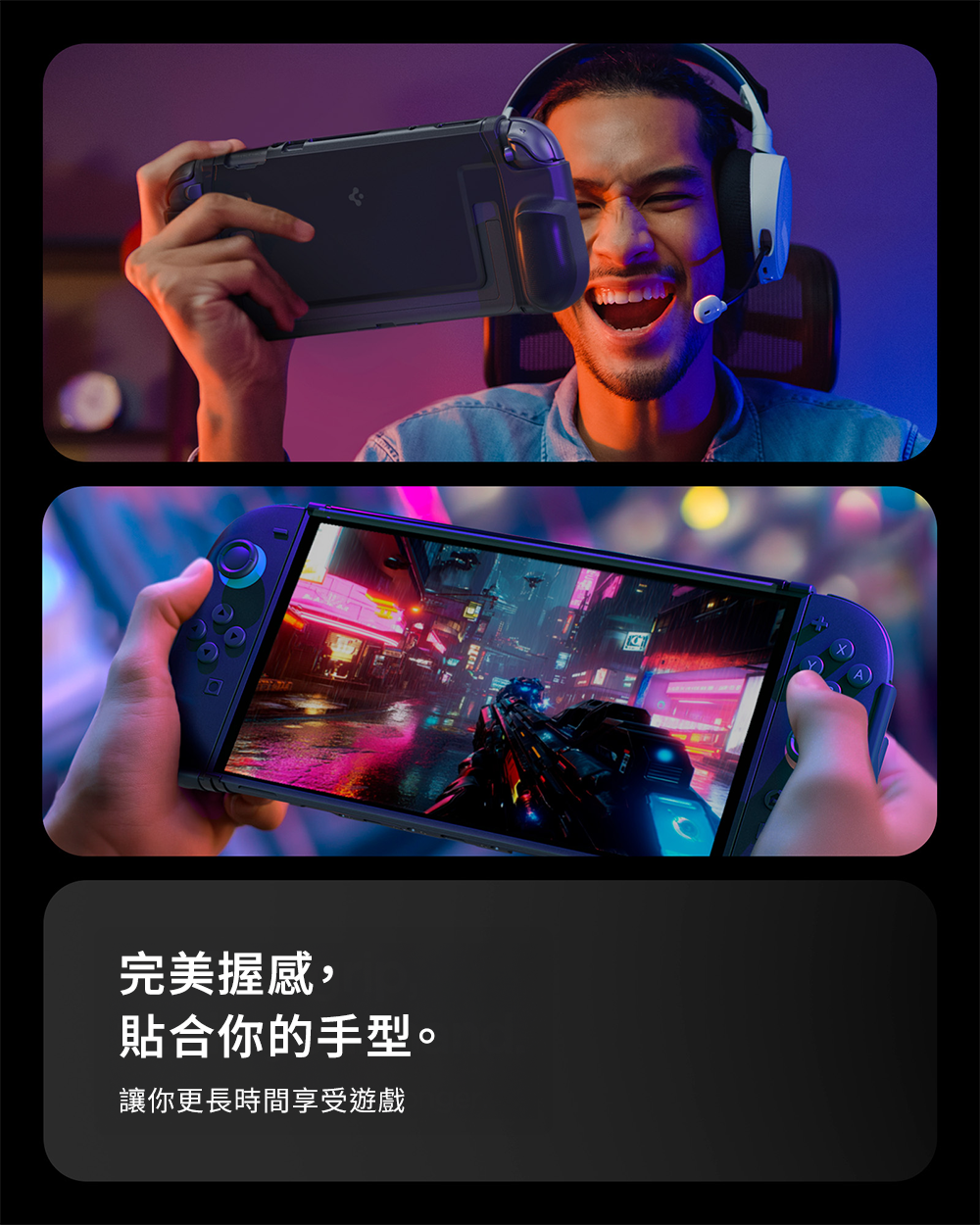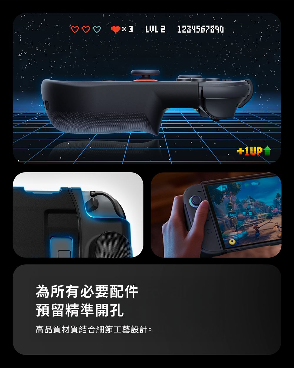 ∙符合人體工學的雙重握把,提供全天舒適的遊戲體驗
