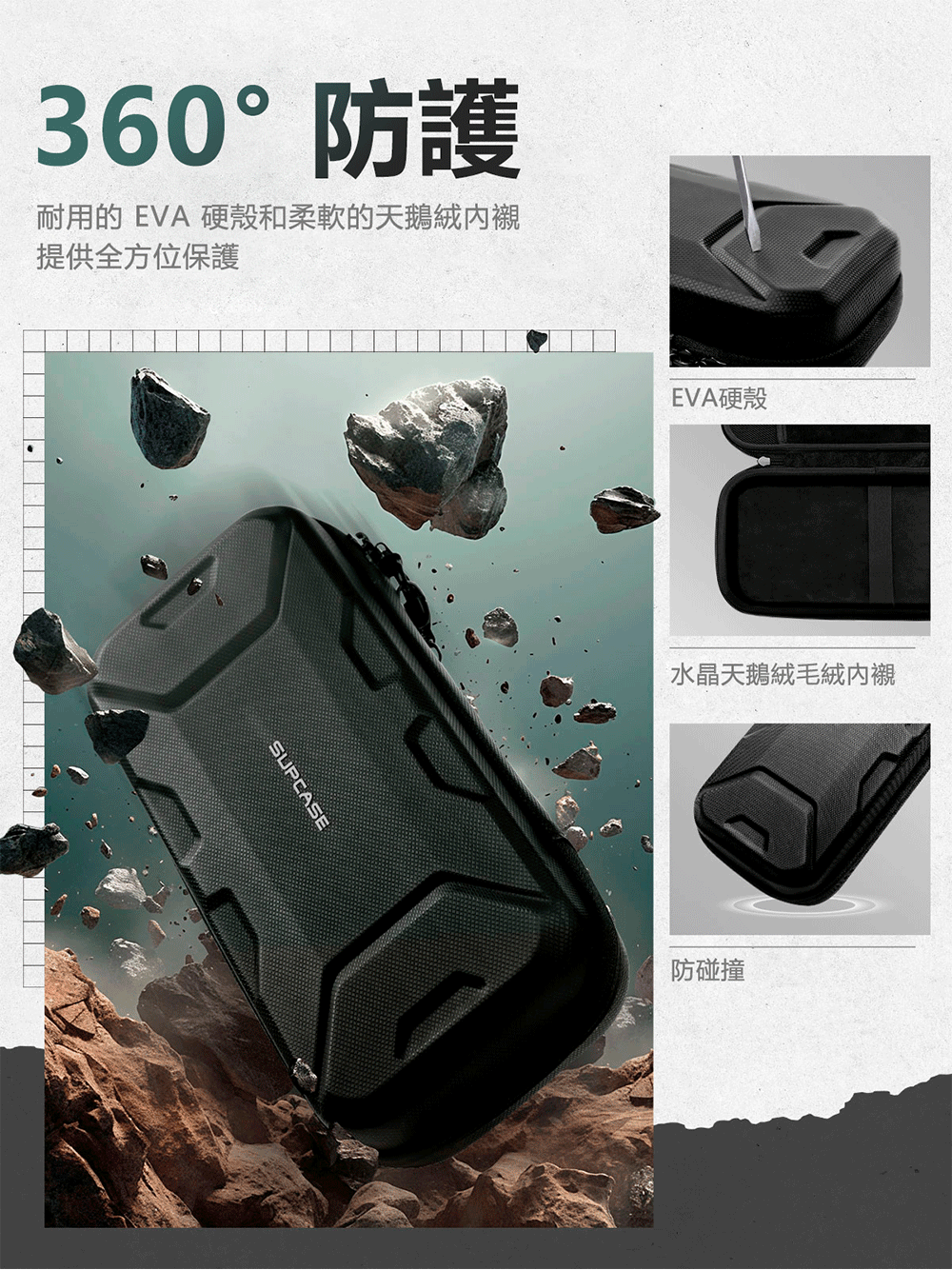 · EVA硬殼搭配柔軟天鵝絨內襯,全方位保護