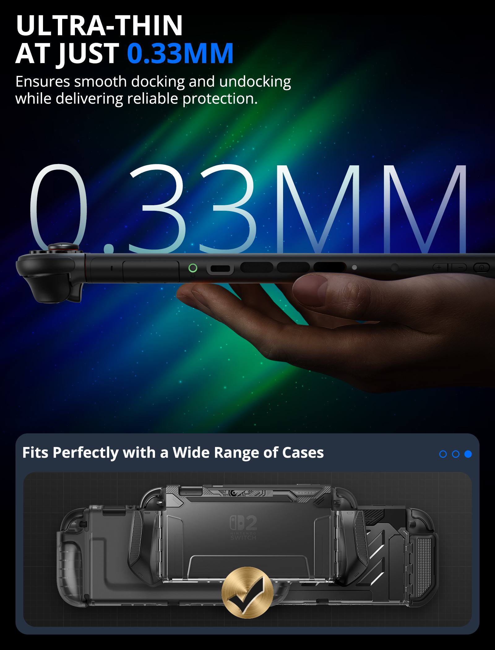 · 極薄僅 0.33mm,確保順暢插拔底座,同時提供穩固保護。