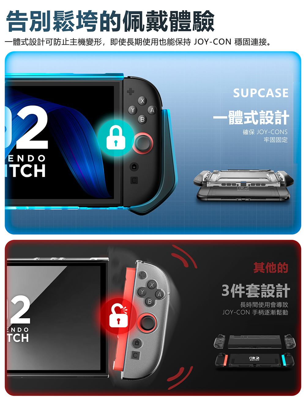 · 一體式設計防止主機變形,長期使用也能保持Joy-Con穩固鏈接