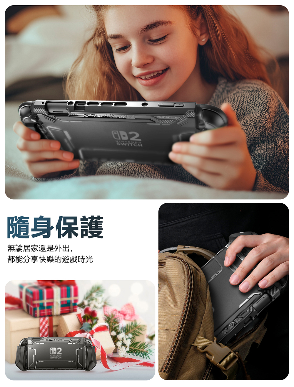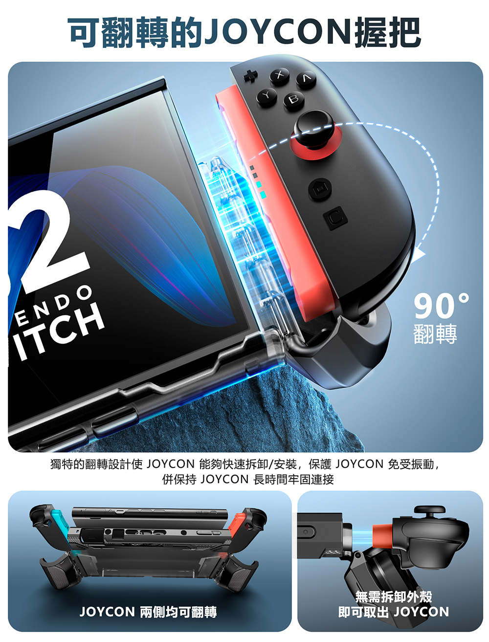 · 殼套在Joy-Con連接處可翻轉,使Joy-Con手把可快速拆卸/安裝,無需拆卸殼套